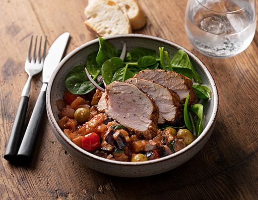 GRILLED BBQ PORK TENDERLOIN WITH CAPONATA
