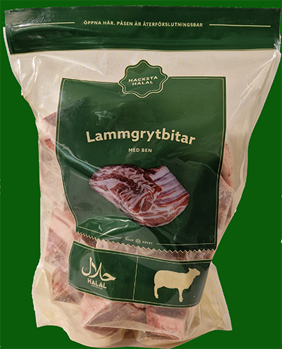 Grytbitar av lammframdel med ben, Halalslaktat.